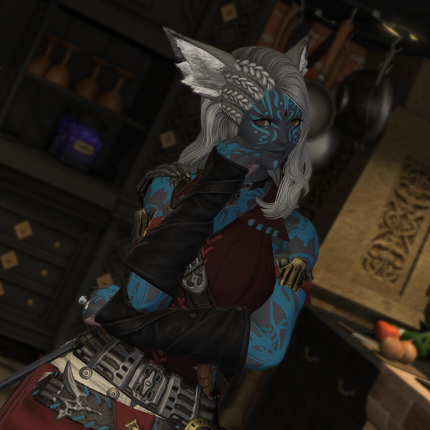 RP Talking Points: Survived the massacre of Hotgo, grew up on the ship "The Howling Rose" and has a tattoo of the ship's colors on her right shoulder, lived in Idyllshire.Recently, she has somehow forgone her old Xaela form, but will deflect if asked how this was achieved.Currently married to Sumire Hara.